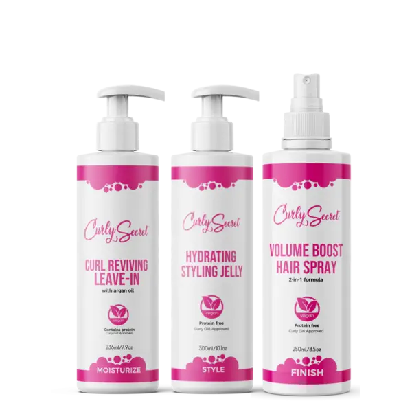 To Finish you need the Volume Boost Hair Spray! It is created as multifunctional product. The spray creates intense volume by adding body to the hair without drying it out. As a multifunctional product it can also be used as a hair spray for a more subtle hold. Spray after your gel on the hair to increase the hold of your curls. The super lightweight formula is suitable for straight, wavy, curly and coily hair.