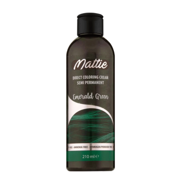 Mattie Direct Coloring Cream Emerald Green (210ml) is een semi-permanente haarkleurcreme zonder ammoniak, speciaal ontwikkeld voor een levendige, intens groene kleur die je een unieke en mystieke uitstraling geeft. Deze kleur past perfect bij de laatste haartrends en is ideaal voor iedereen die durft op te vallen.