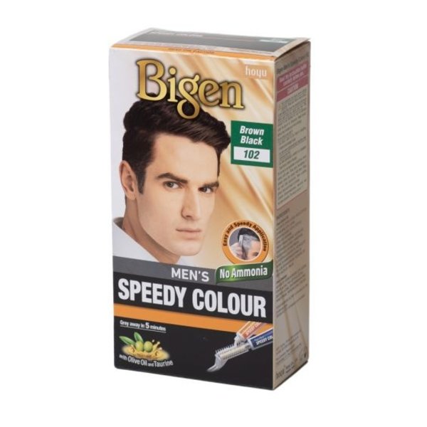 Bigen - Men's Speedy Color - Brown Black #102 is een snelle, gebruiksvriendelijke mannenhaarkleuring die grijs perfect dekt in slechts 5 minuten. De druppelvrije crème werkt samen met de meegeleverde applicatorkam voor een nette, gelijkmatige toepassing op haar én bakkebaarden. De nuance Brown Black #102 geeft een natuurlijk ogende donkerbruin-zwart finish met gezonde glans en zonder indringende geur